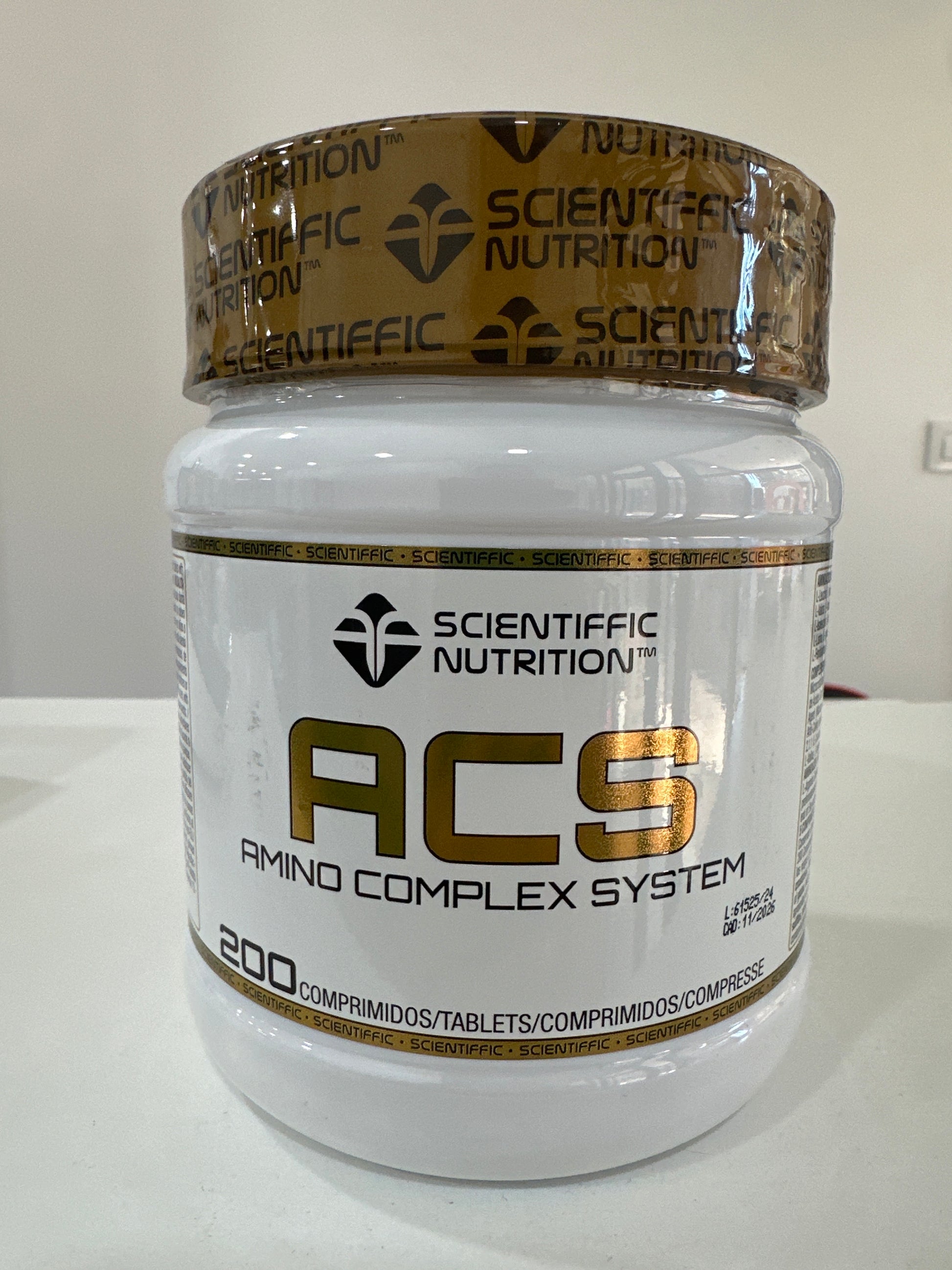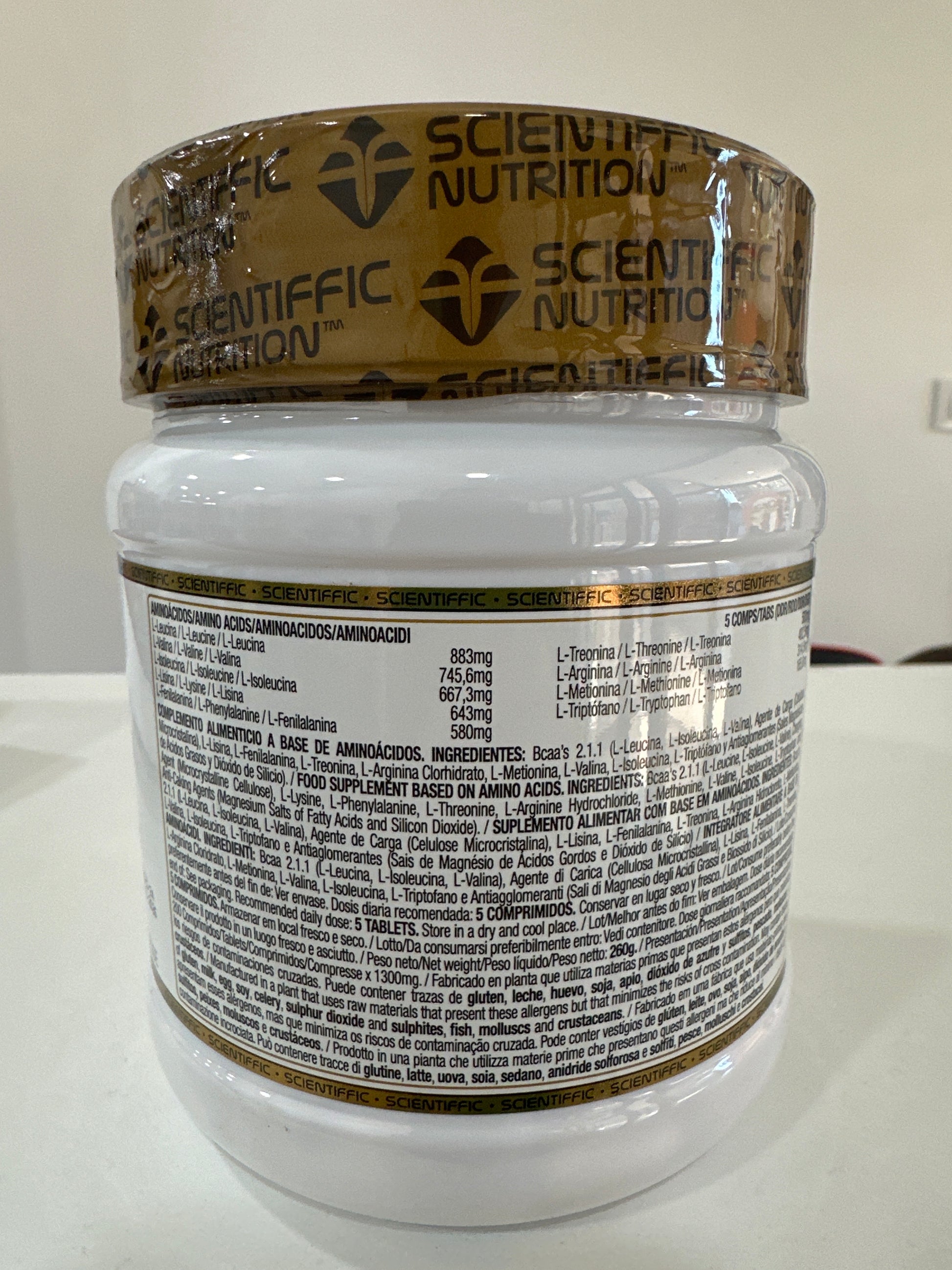 COMPLEMENTO ALIMENTICIO A BASE DE AMINOÁCIDOS. INGREDIENTES : Bcaa 2.1.1 (L-leucina, L-isoleucina, L-valina), axente de carga (celulosa microcristalina), L-lisina, L-fenilalanina, L-treonina, clorhidrato de L-arxinina, L-metionina, L-valina, L-isoleucina, L-triptófano e axentes antiaglomerantes (sales, ácidos graxos de magnesio e dióxido de silicio).