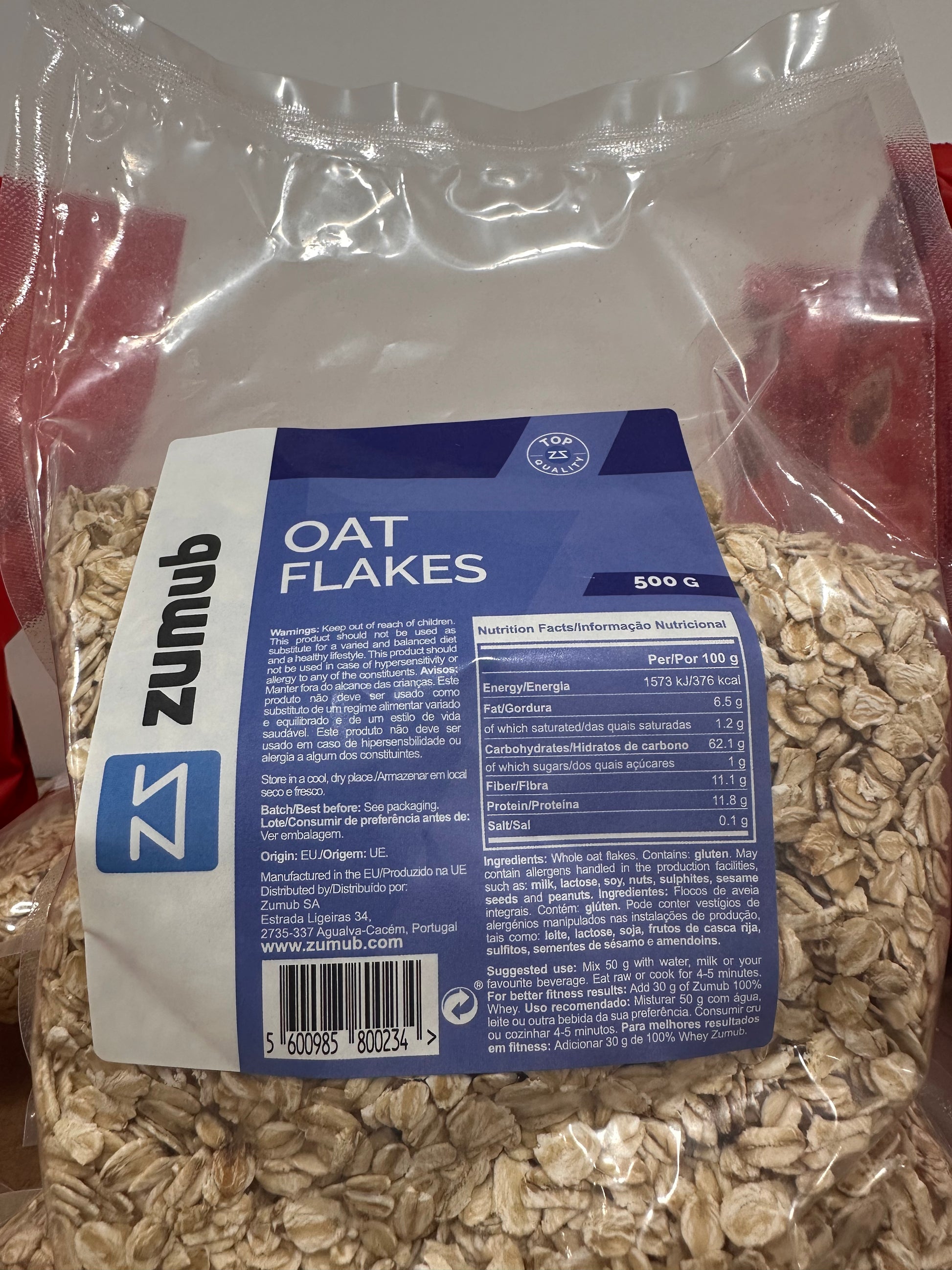 O/A Flocos de avea Zumub Apoian o teu estilo de vida saudable e activo, xa que aumentan os teus niveis de enerxía e che proporcionan unha gran cantidade de nutrientes. Estes flocos de avea teñen un sabor delicioso mesturados con leite ou outras bebidas, ou engadidos a batidos, cereais ou receitas.
